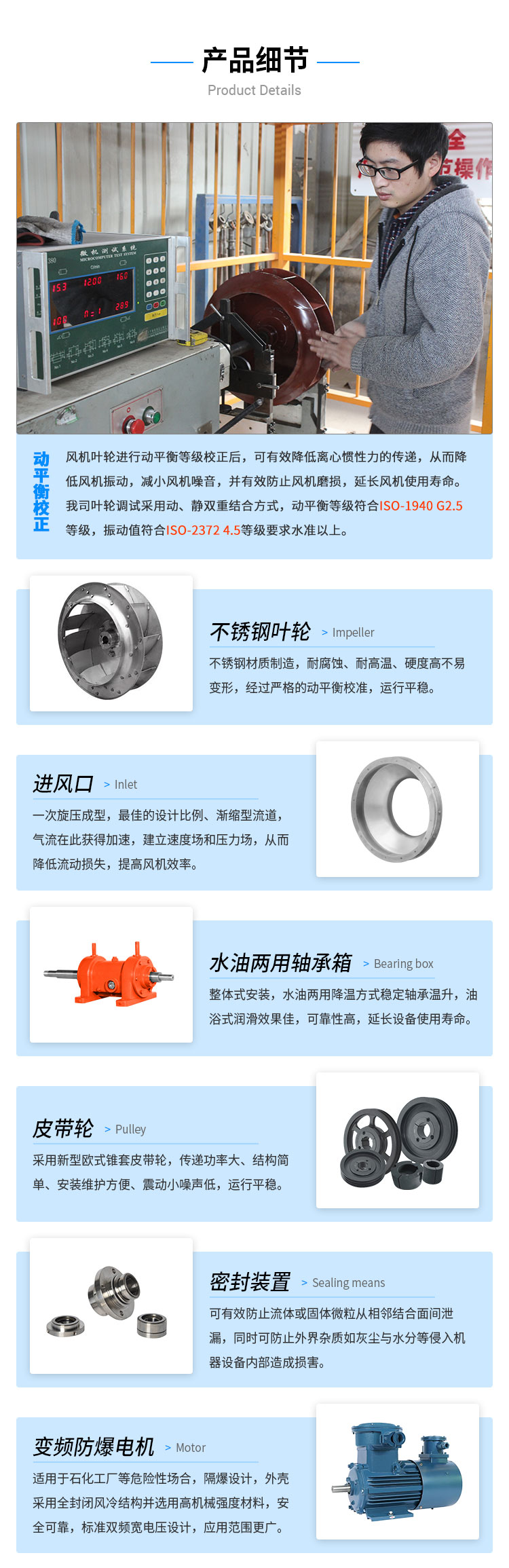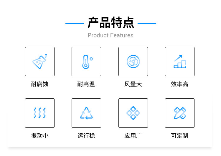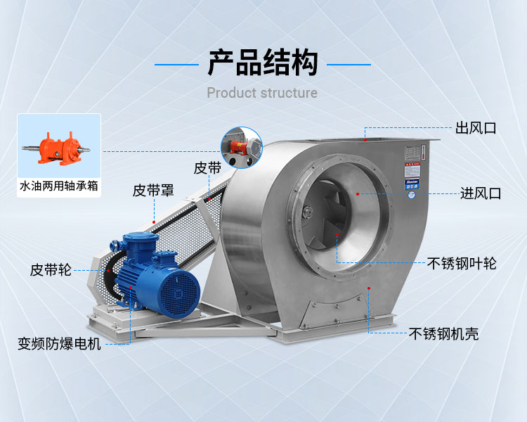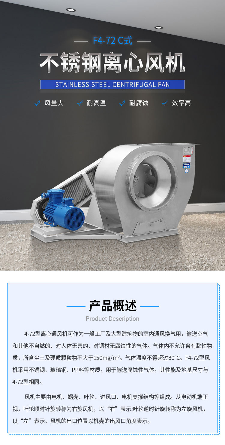 外壳及风轮采用不锈钢风机材质焊接而成,耐高温,能有效防酸碱、防腐蚀。