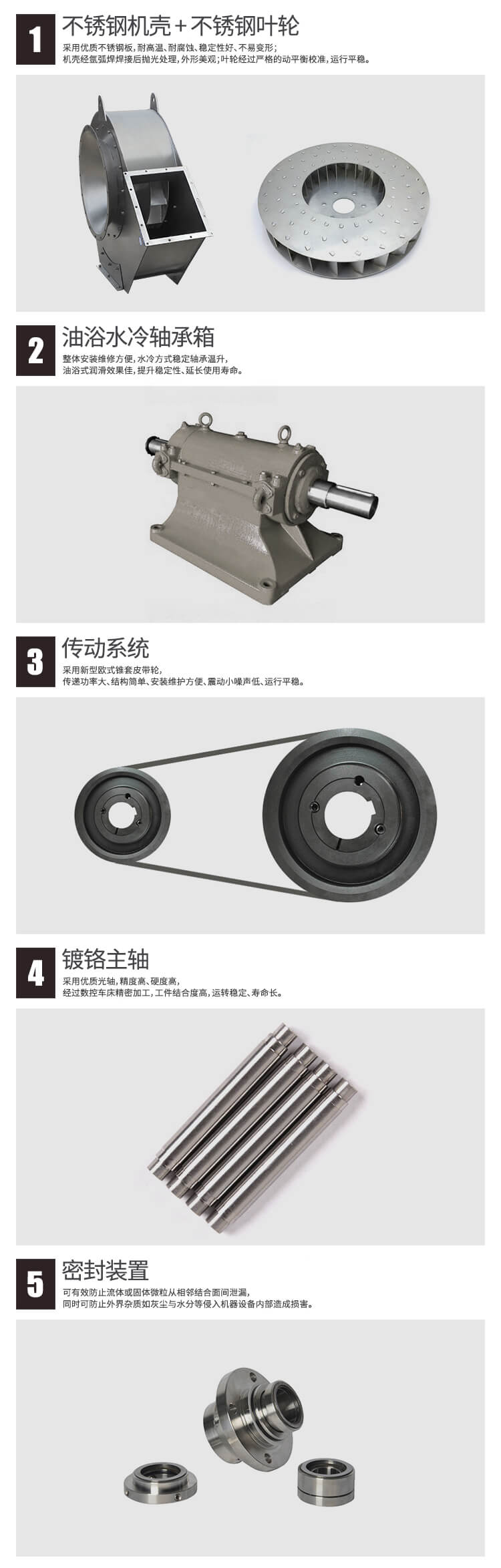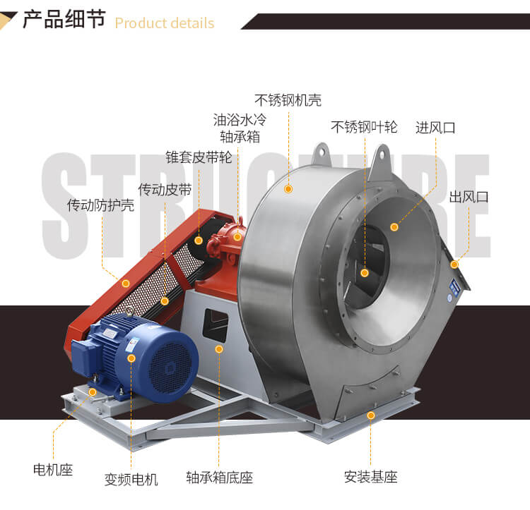 外壳及风轮采用不锈钢风机材质焊接而成,耐高温,能有效防酸碱、防腐蚀