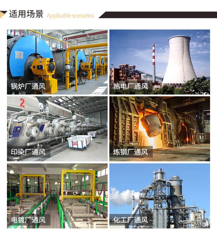 广泛适用于工矿企业、大型建筑物、宾馆酒楼等室内通风换气。