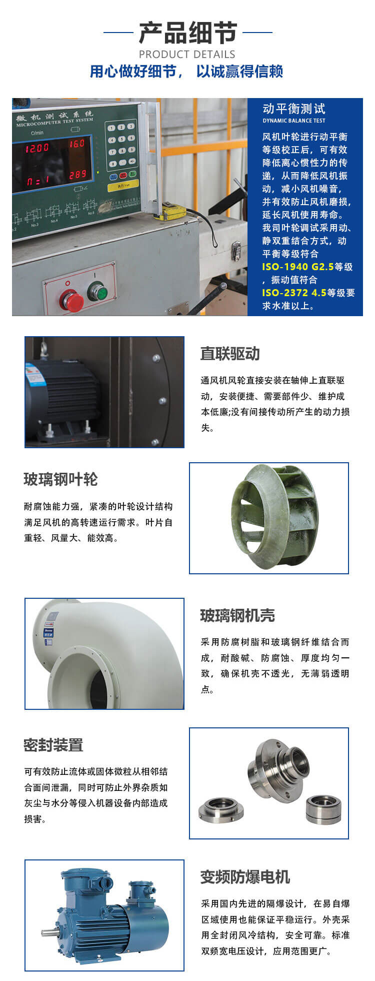 该风机具有良好的气动性能以及运转平衡、振动小、效率高、寿命长等特点。广泛适用于化工厂、电镀厂、实验室、酸洗厂等室内通气换气。
