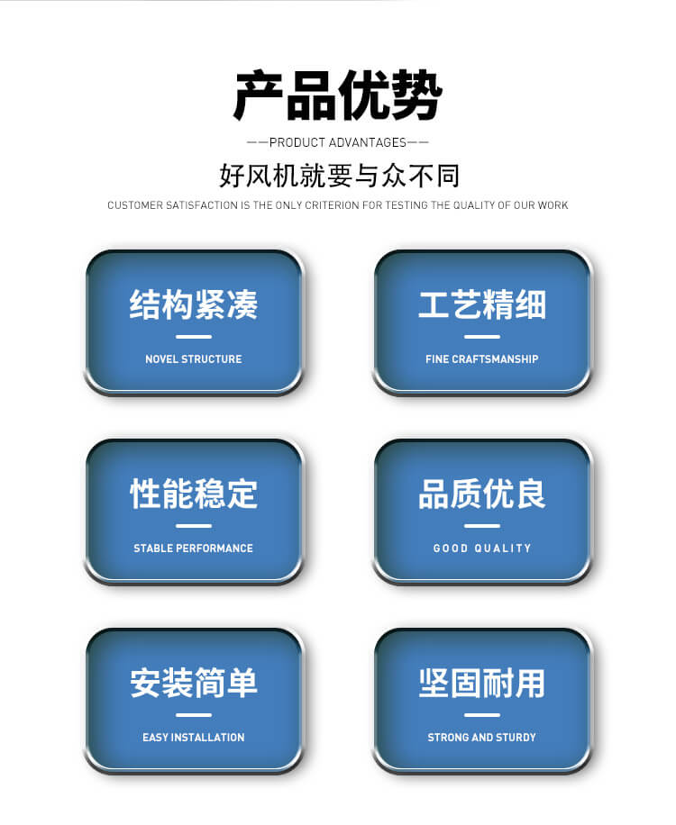 主要由玻璃钢材质制成,大机号也可以制成皮带驱动,耐腐蚀性好、不易老化。噪声低、重量轻。