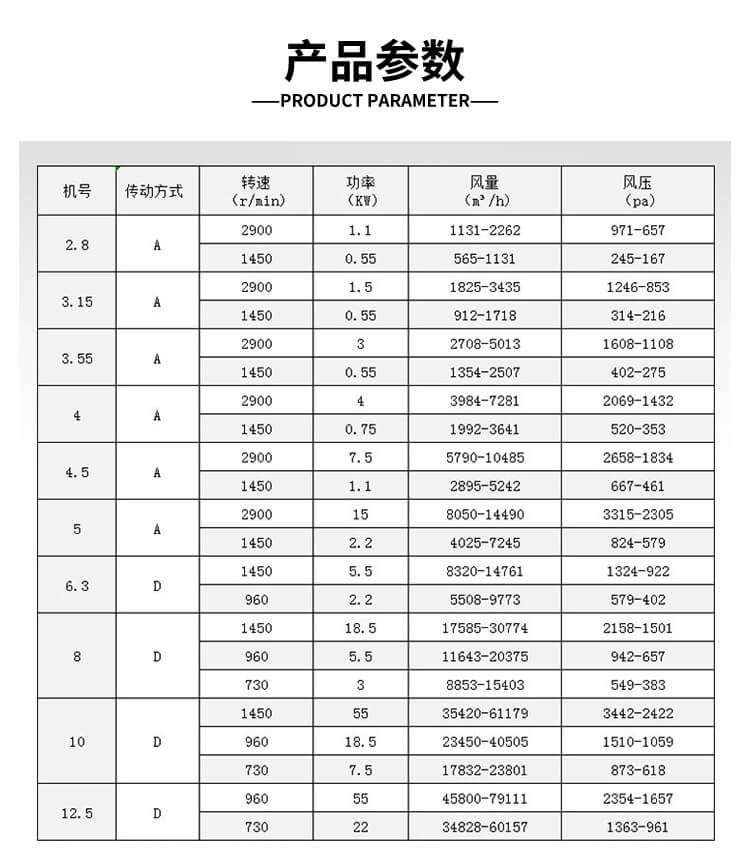 主要由玻璃钢材质制成,大机号也可以制成皮带驱动,耐腐蚀性好、不易老化。噪声低、重量轻。