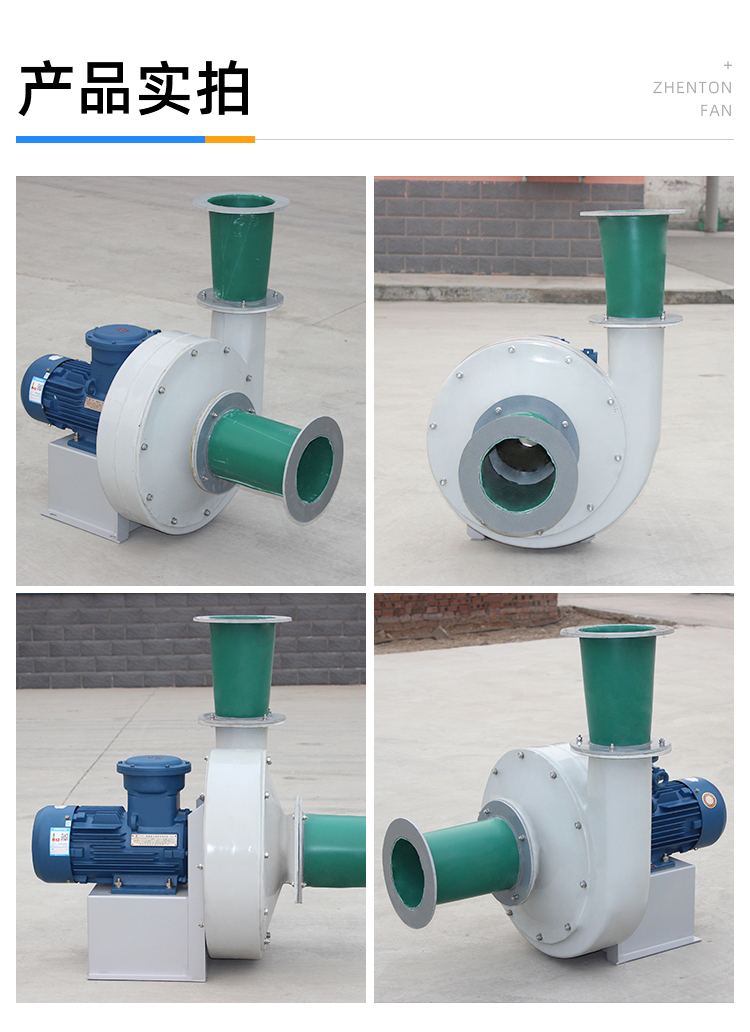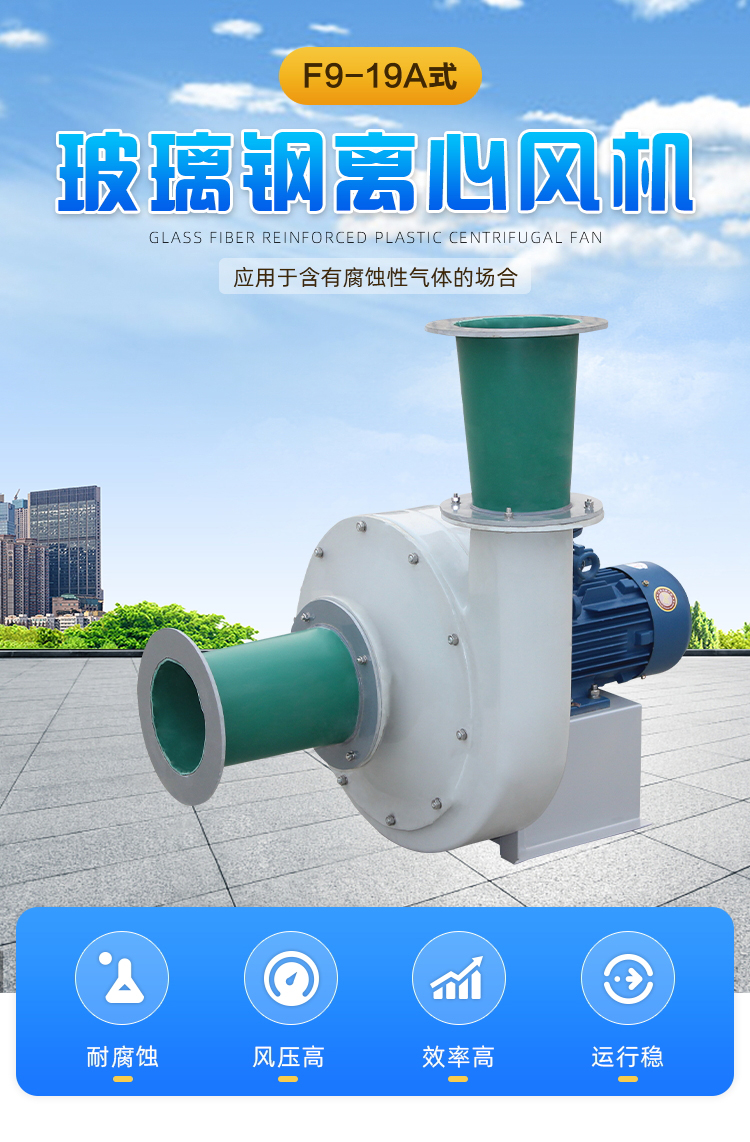 适用于化工、纺织、电镀、实验室等场所排送含有一定浓度的酸、碱、盐等腐蚀性气体,也可以作为一般工厂的建筑物通风换气用