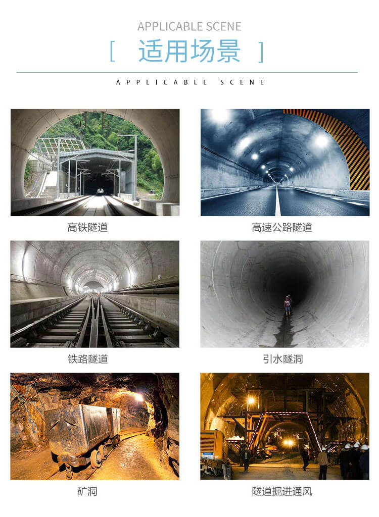 隧道风机主要用于排出在隧道施工中,由于炸药爆炸、内燃机的使用、开挖时地层中放出有害气体,是为隧道施工提供良好的施工环境,维护作业人员身体健康,保障正常、顺利施工,提高工作效率,保障工程质量的重要条件。