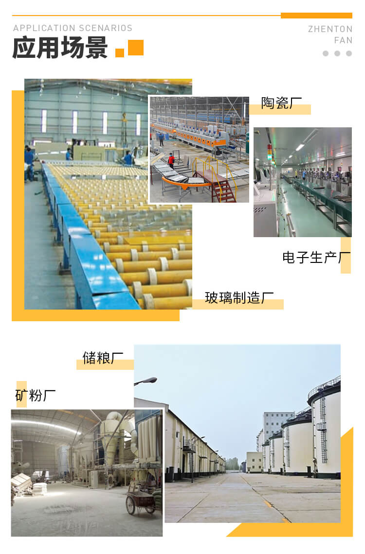 一般适用于锻冶厂、、玻璃厂、, 陶瓷厂、无线电厂等高压强制通风及粮食厂、饲料厂、矿粉厂、沙场等加工行业的物料输送。