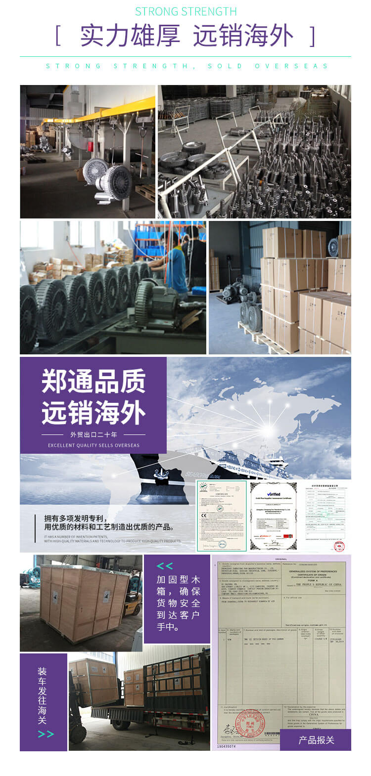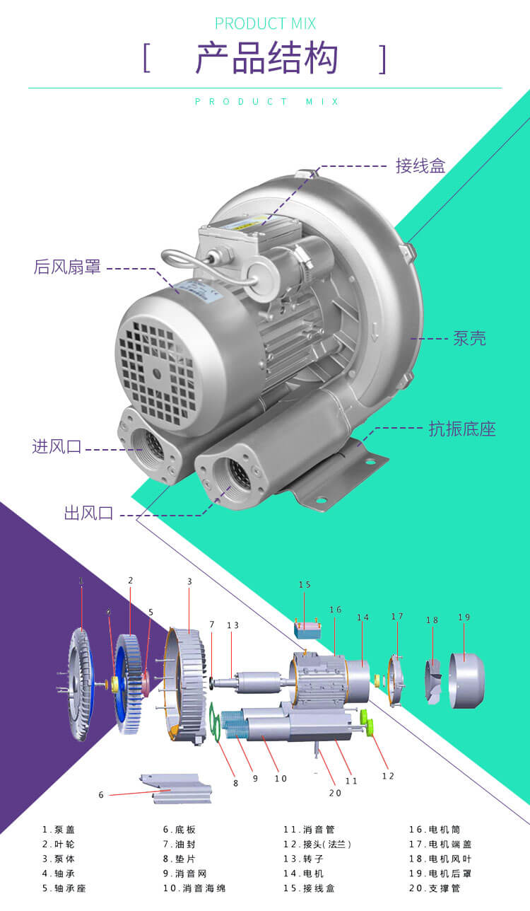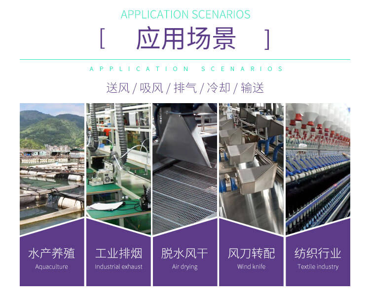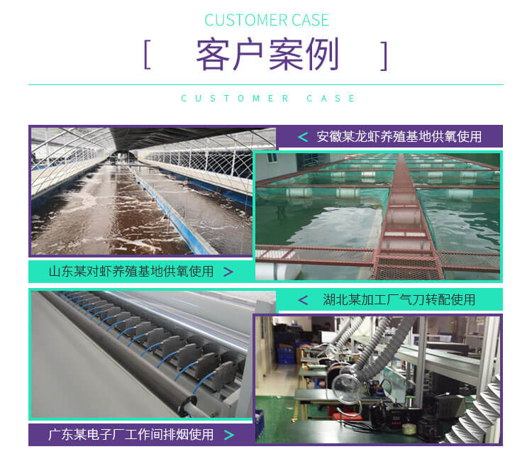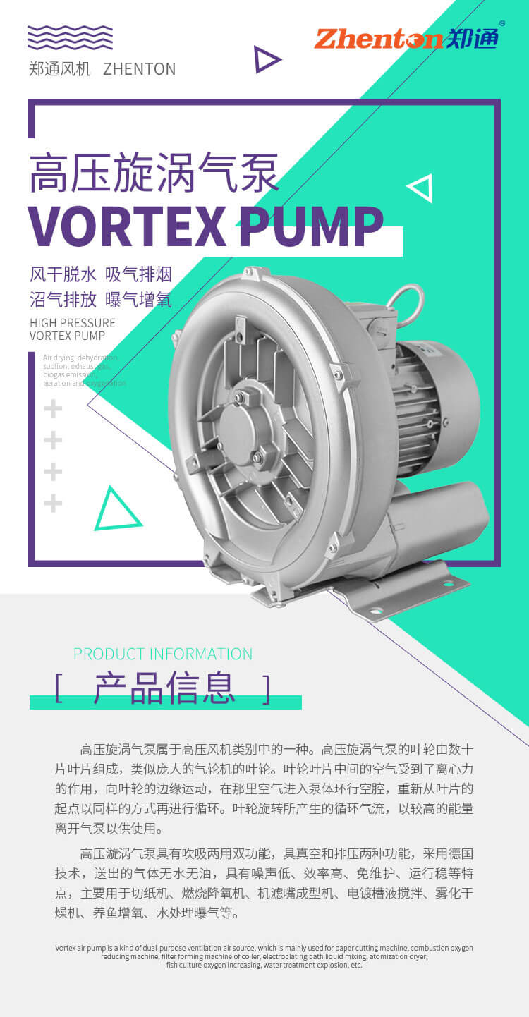 高压漩涡气泵具有吹吸两用双功能,具真空和排压两种功能,采用德国技术,送出的气体无水无油,具有噪声低、效率高、免维护、运行稳等特点,主要用于切纸机、燃烧降氧机、机滤嘴成型机、电镀槽液搅拌、雾化干燥机、养鱼增氧、水处理曝气等。
