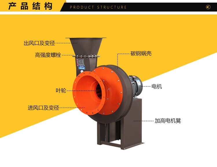 9-26型高压离心通风机一般用于锻冶炉及高压强制通风。并可广泛应用于输送物料,以及输送无腐蚀、不自燃不含黏性物质之气体。介质温度一般不超过50°C, 最高不超过80°C。介质中所含尘土及硬质颗粒不大于150mg/m3。