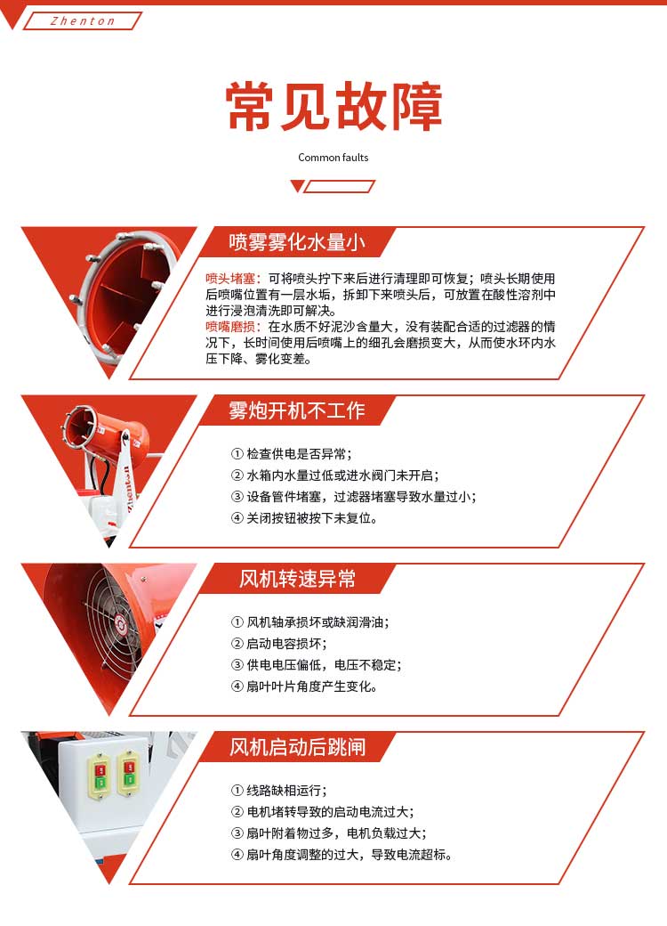 手推移动式喷雾风机降尘速度快、风量大、机结构紧凑、布局合理、移动灵活、构造简单易维护;
