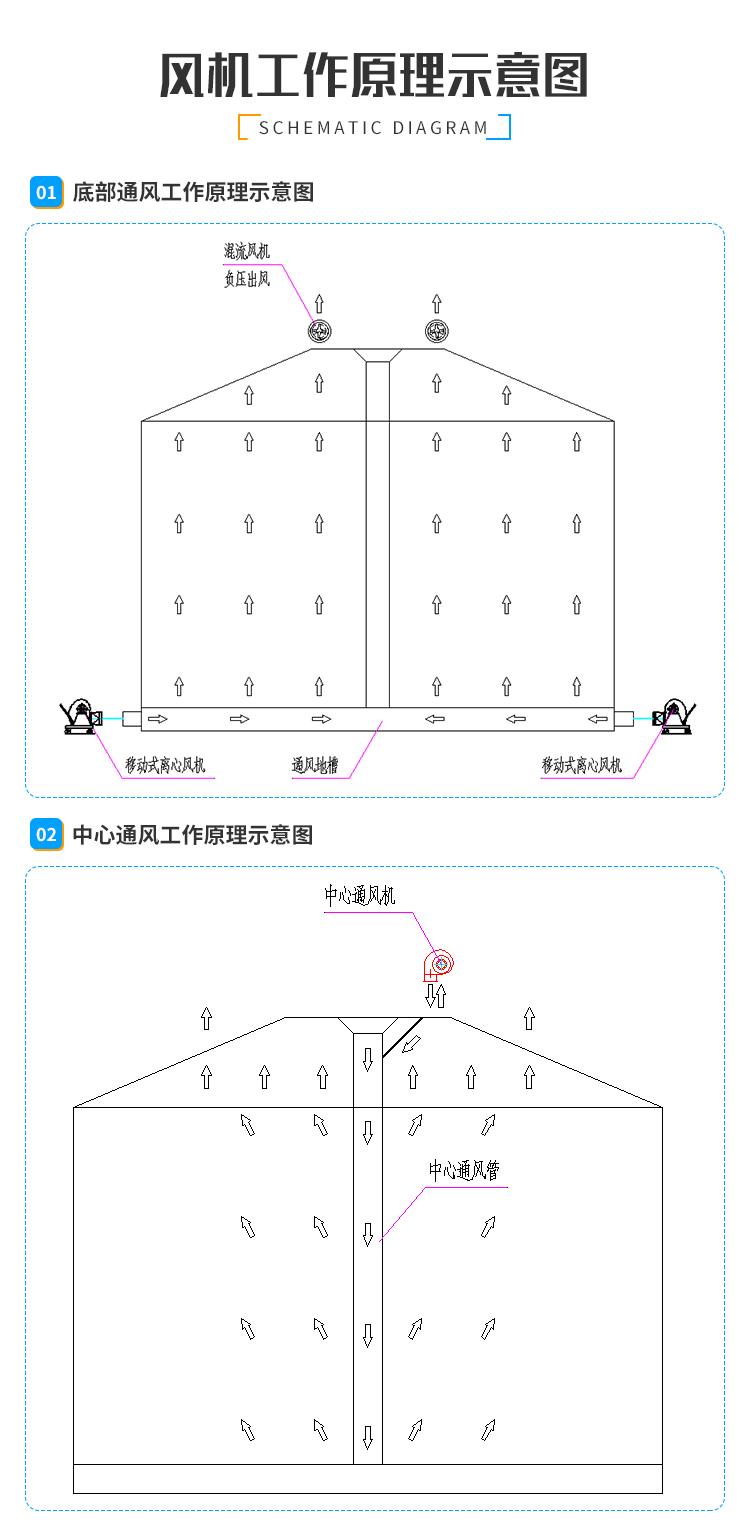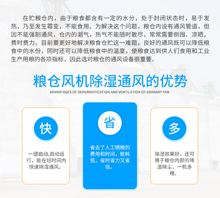 适用于大型粮库、粮管所仓库、工厂和建筑物的通风、换气、降温。