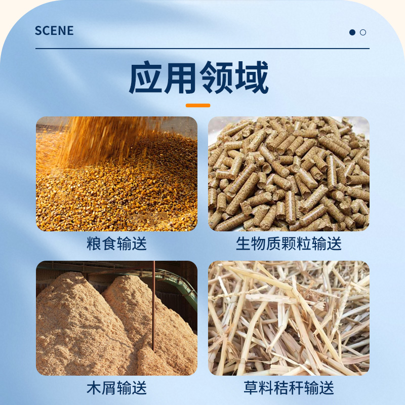 粮食输送、生物质颗粒输送、木屑输送、草料秸秆输送、纸屑输送