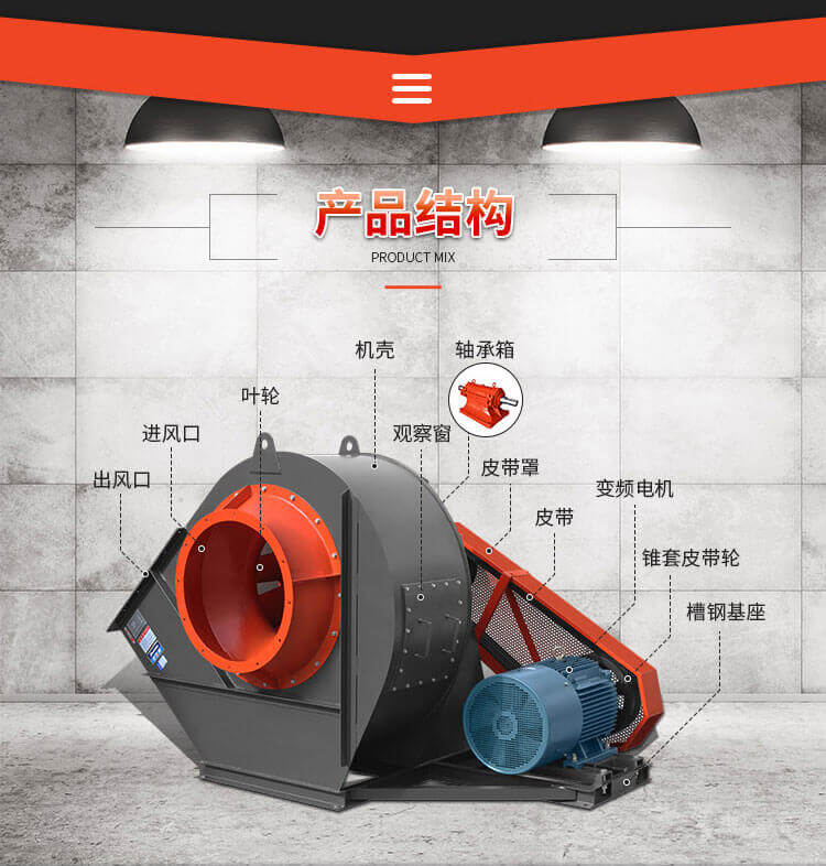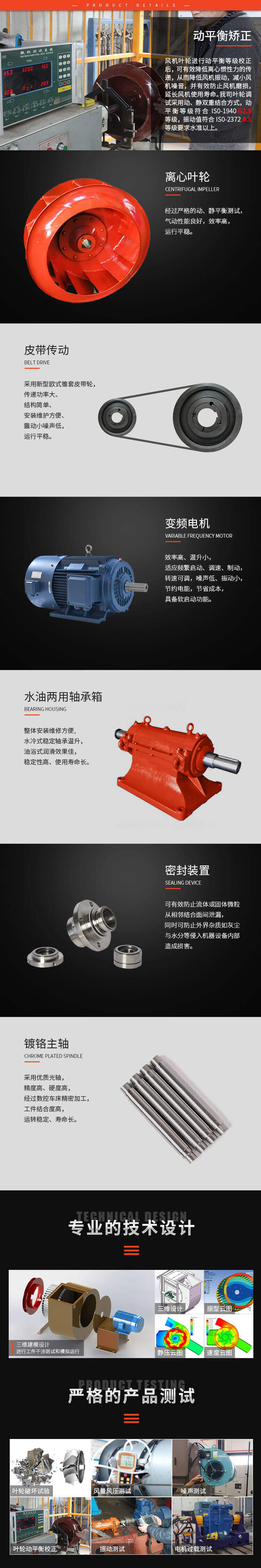 C式传动部分是由主轴、轴承箱、滚动轴承、带轮组成,具有良好的气动性能,运转平稳、振动小、效率高、寿命长。