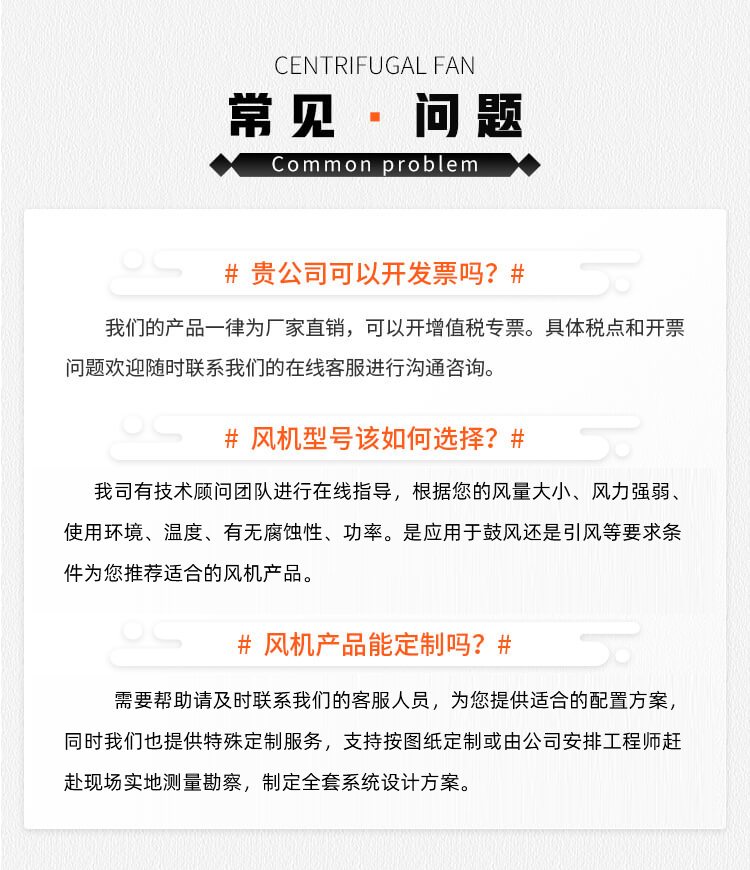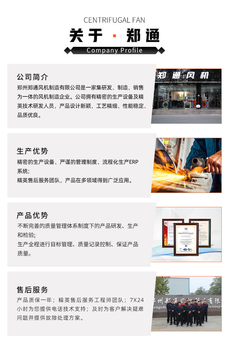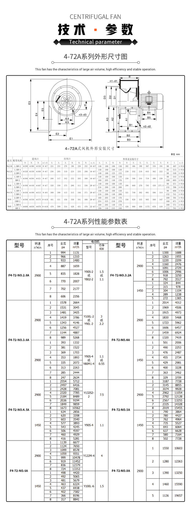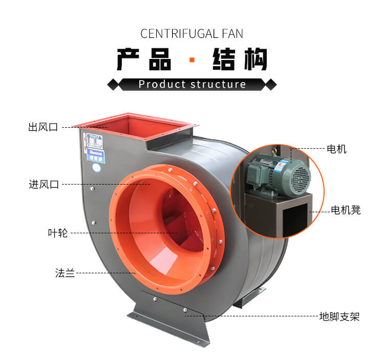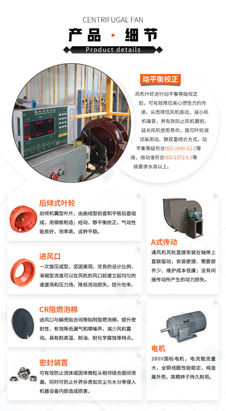 此款风机属于中、低压高效率离心通风机,后倾叶片、运行平稳、效率高、坚固耐用等特点。