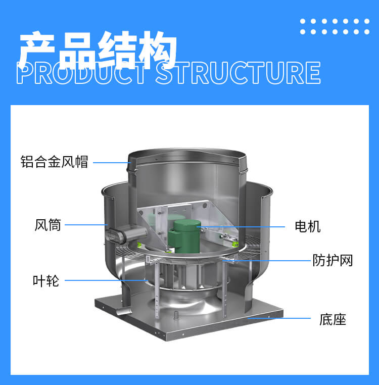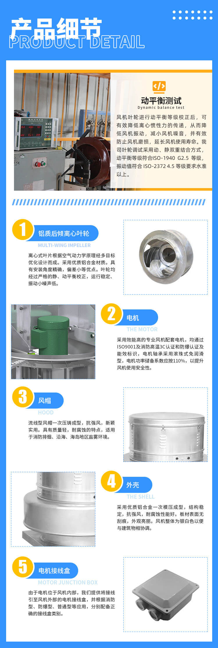 使用范围: 电机与排放气流隔离,更适合排除带有烟尘、油雾、潮湿等污染空气,延长电机及传动部件的使用寿命。采用全铝质后向板形离心式叶轮,平衡等级高,气流组织顺畅,运行平稳;具有重量轻、压力高、风量适中、噪声低、耗电省、外形美观牢固等优点,广泛用于机械、化工、橡胶、制药、轻纺等行业的车间高大厂房及高级民用建筑的屋顶排风换气。