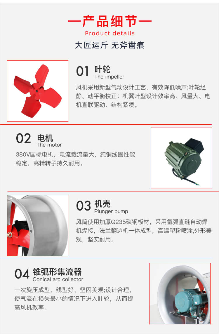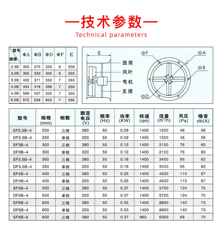 壁式轴流风机产品规格从3号~8号共有八个机号。传动方式均为A式传动(电动机与叶轮直联),特殊的可制成C式(带传动)。安装形式分壁式、岗位式、管道式三种类型。壁式轴流风机主要由叶轮、进口集流器、机壳、电动机等组成。