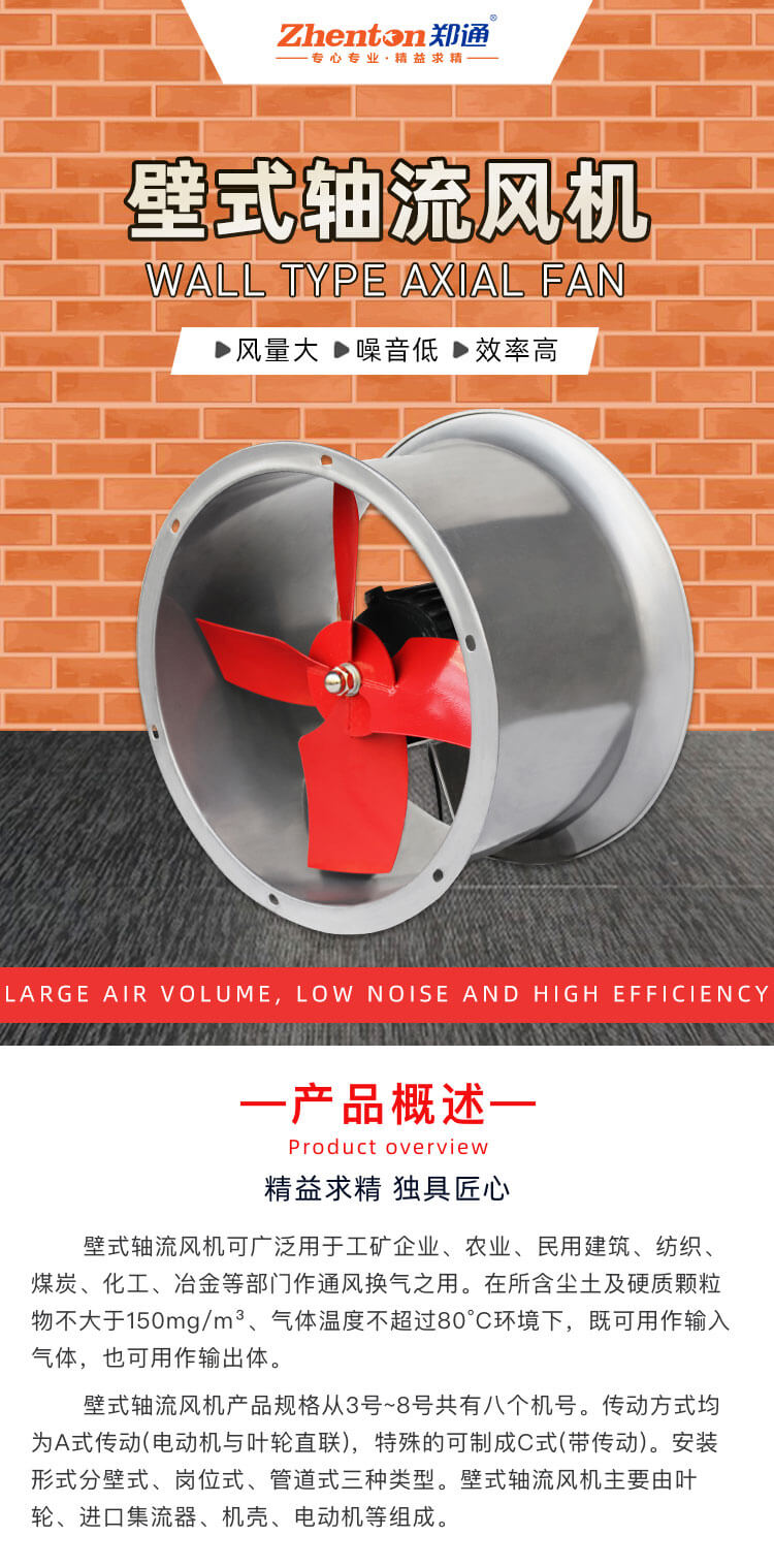 壁式轴流风机可广泛用于工矿企业、农业、民用建筑、纺织、煤炭、化工、冶金等部门作通风换气之用。在所含尘土及硬质颗粒