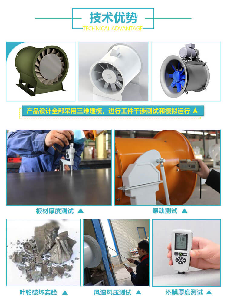 长的排气管道内间隔串联安装,以提高管道中的风压。通过通风机的气体应无腐蚀性及显著粉尘,其温度不得超过45°C。