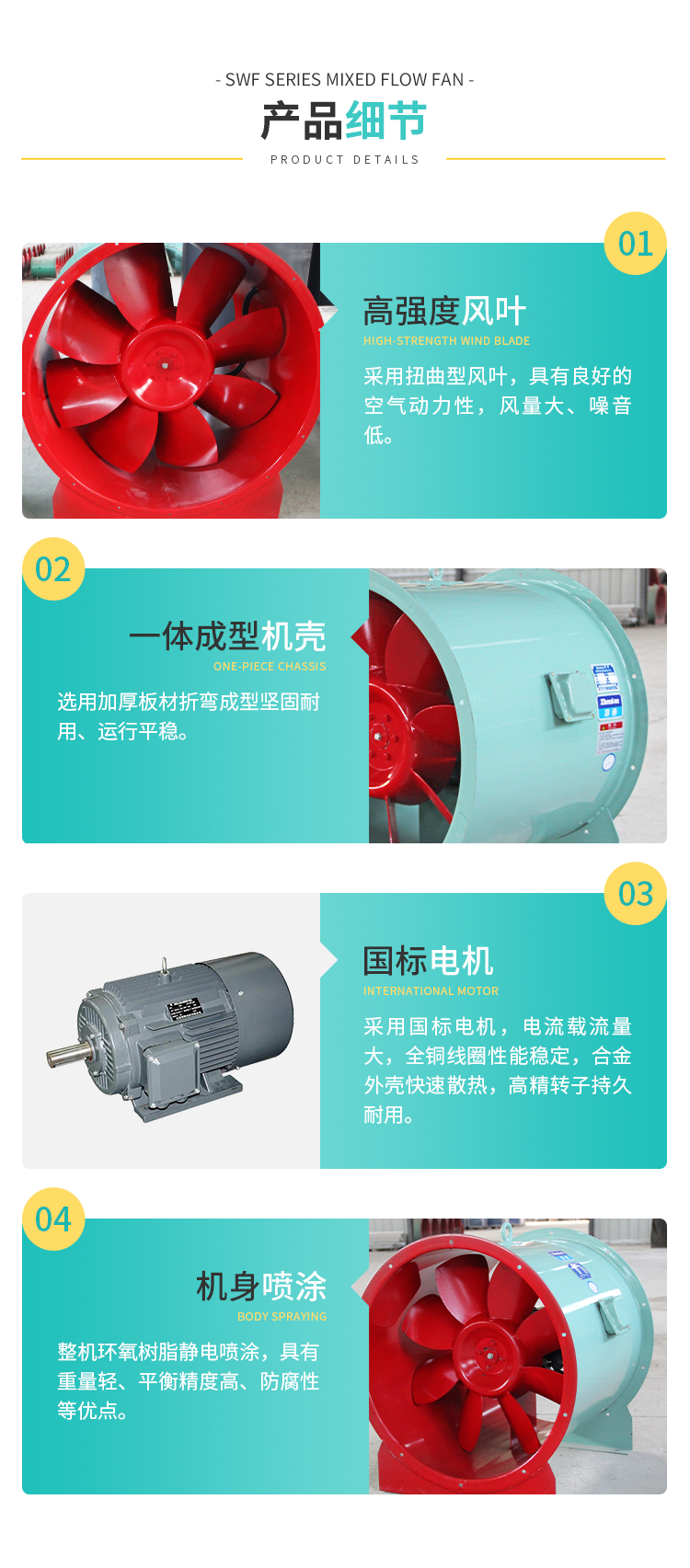 该风机是兼备轴流风机风量大和离心风机风压高两者优点的新型风机