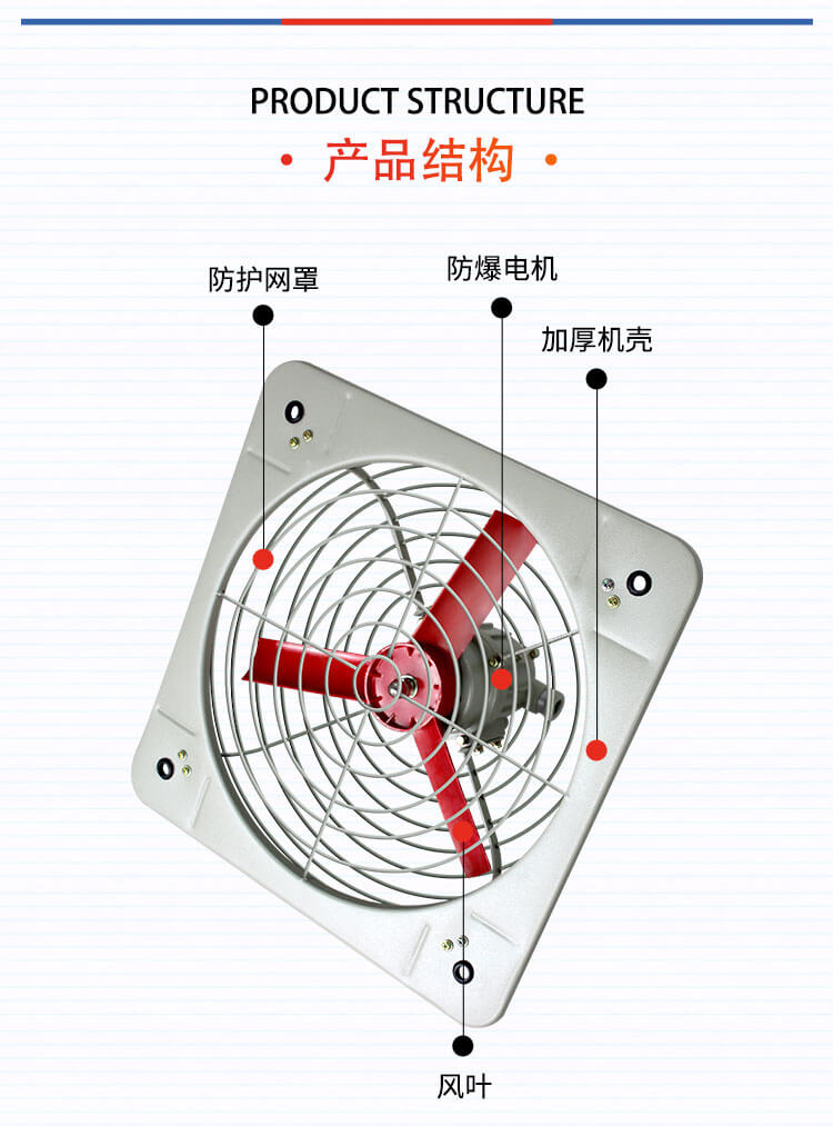 CBF防爆轴流风机适用于Ⅱ类,A、B、级T1、T2、T3、T4,温度组,可燃性气体与空气形成的爆炸性环境。
