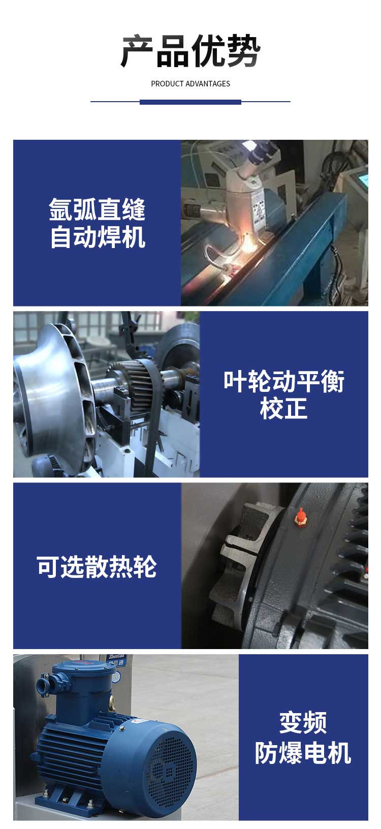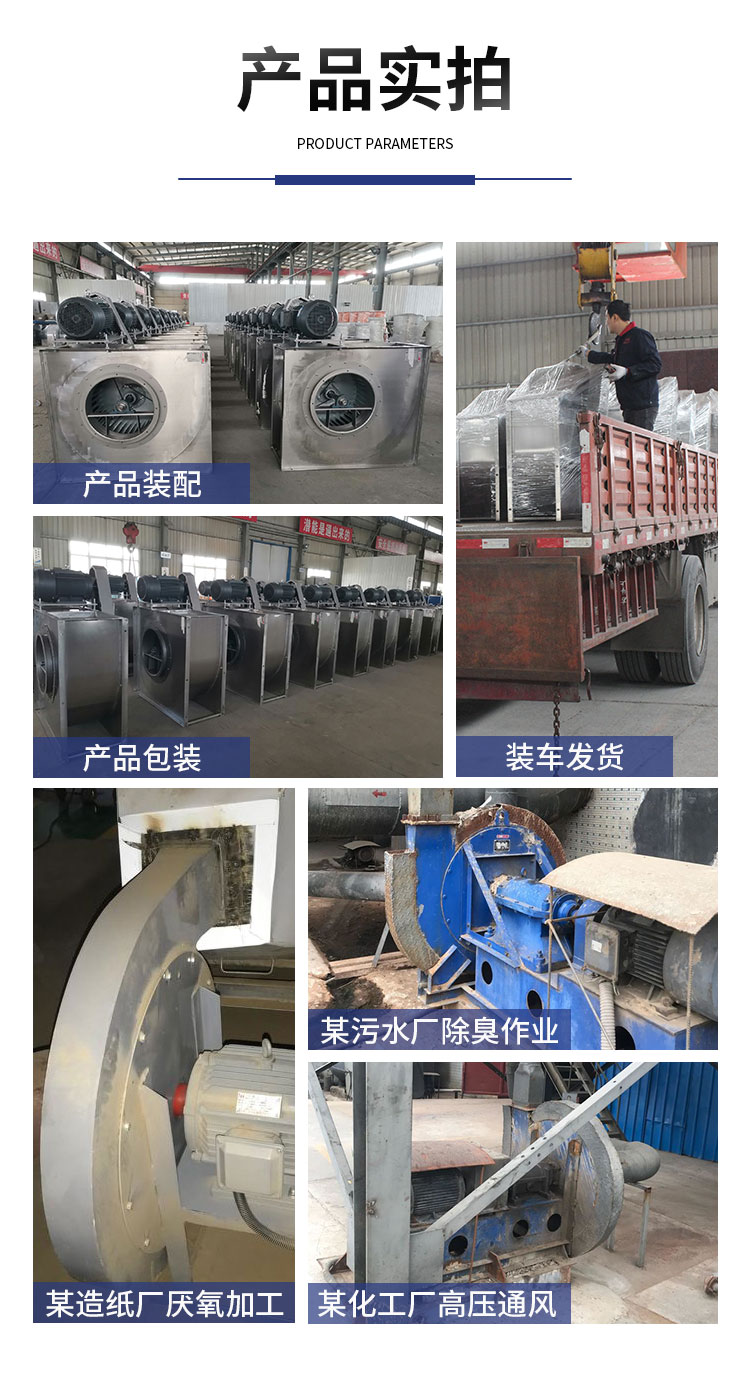外壳及风轮采用不锈钢风机材质焊接而成,耐高温,耐酸碱、防腐蚀