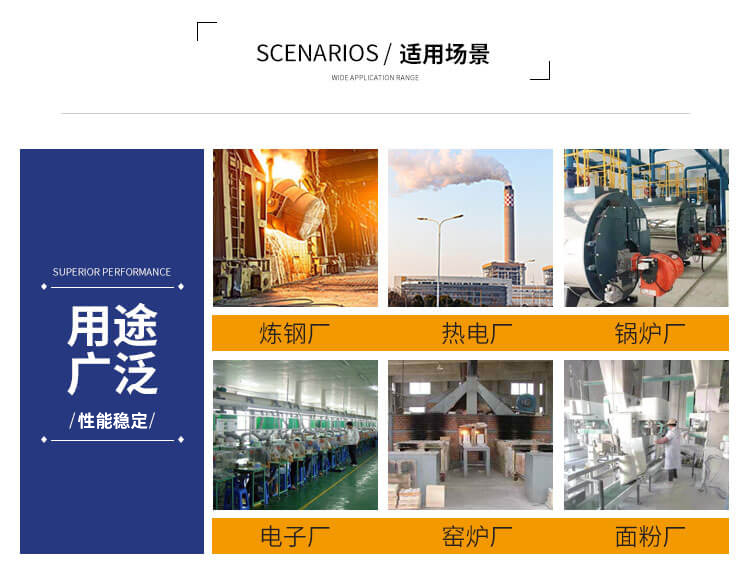 适用于炼钢厂、热电厂、锅炉厂、电子厂、窑炉厂、面粉厂等场景。