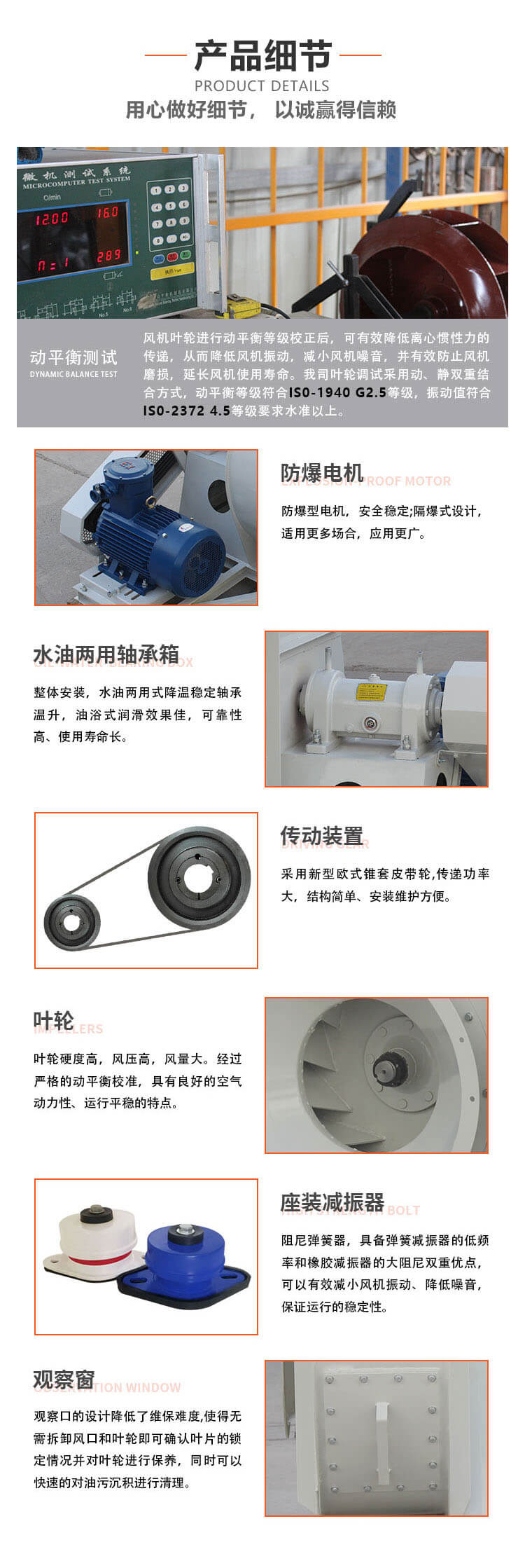 该风机具有良好的气动性能以及运转平衡、振动小、效率高、寿命长等特点。广泛适用于工矿企业、大型建筑物、宾馆酒楼等室内通气换气。