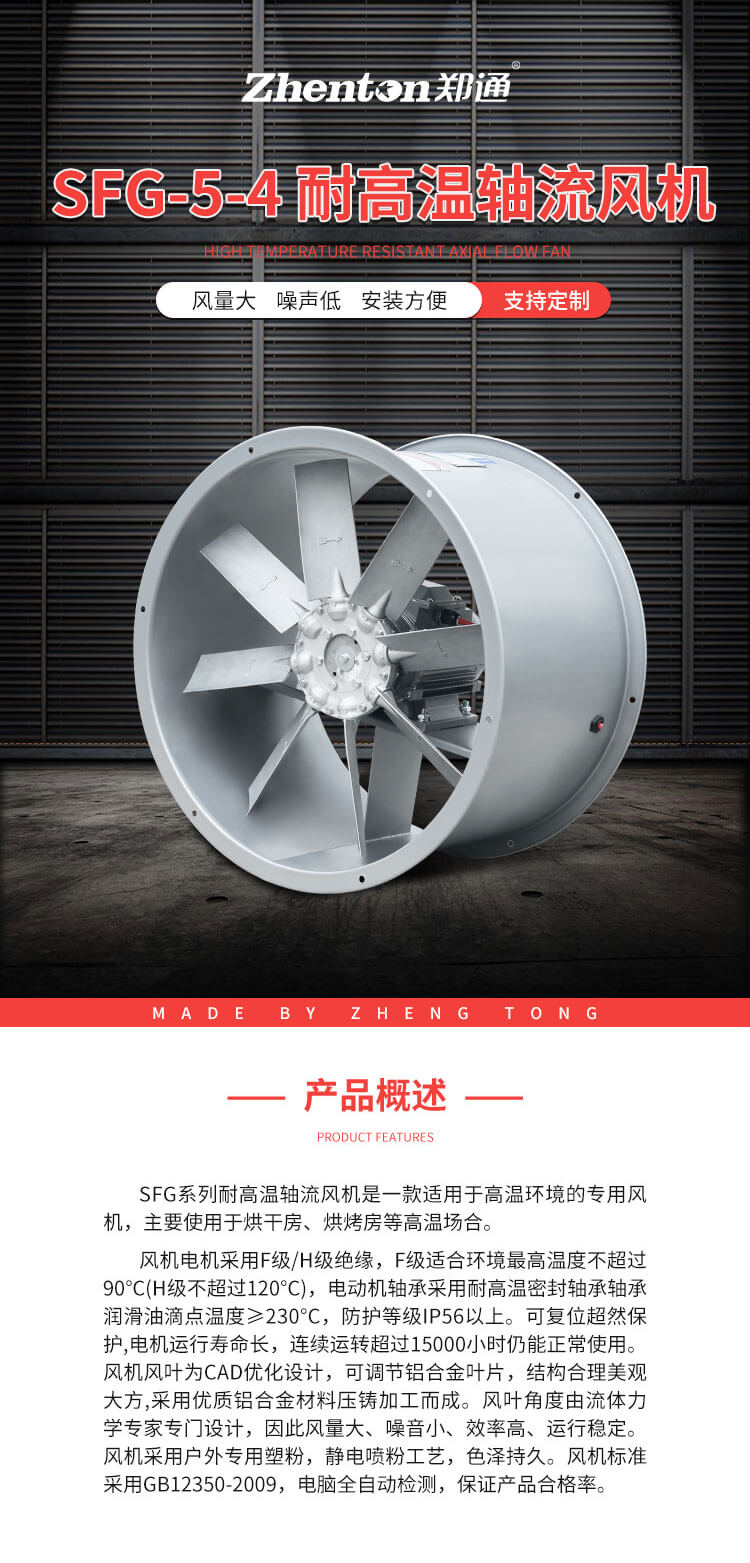SFG系列耐高温轴流风机是一款适用于高温环境的专用风机,主要使用于烘干房、烘烤房等高温场台。